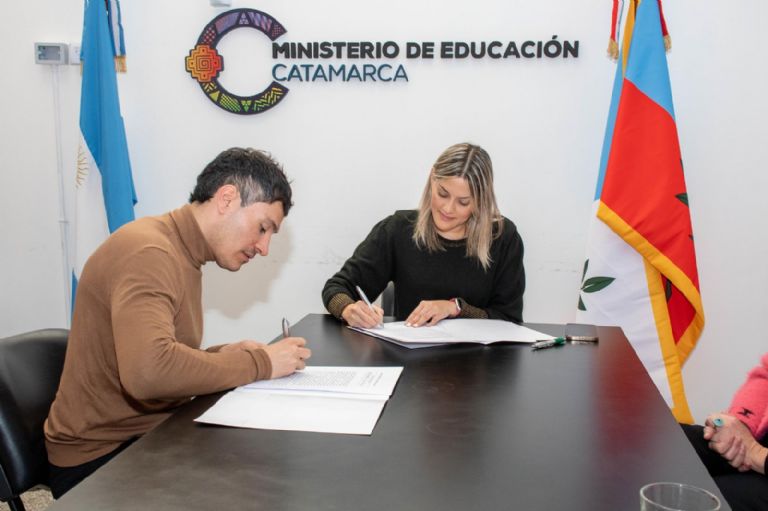 La titular de la cartera educativa local, Andrea Centurión acompañada por el director de Educación Técnica y Formación Profesional, Miguel Sandoval, firmó un acta acuerdo de pasantía, con el representante de la Empresa ARCOR SAIC-Recreo, César Vaca, con el objetivo de implementar un sistema de pasantías secundarias para que los alumnos que cursan las tecnicaturas en la EPET N°1, realicen en la empresa ARCOR actividades relacionadas con las capacidades profesionales y las trayectorias formativas.