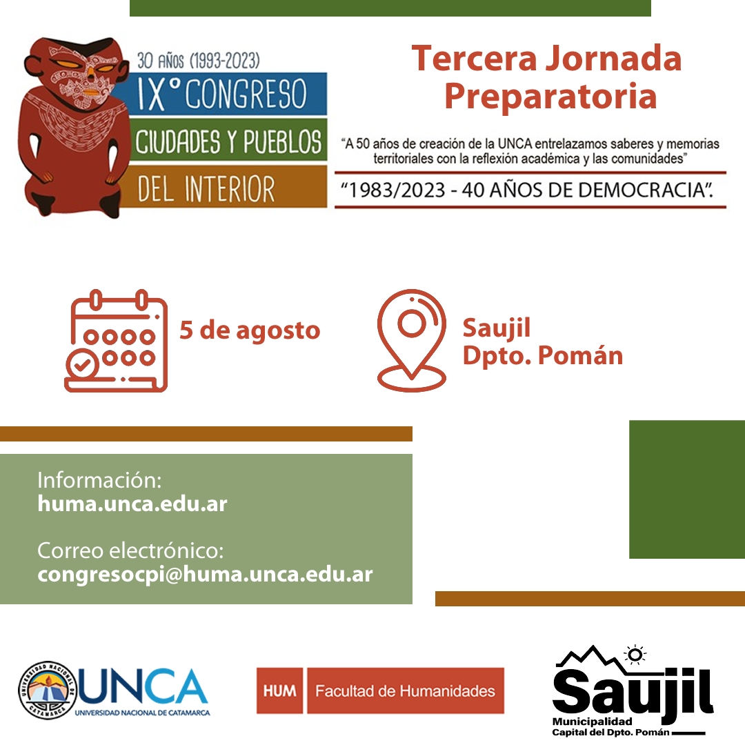 El pasado martes 4 de julio, la decana de la Facultad de Humanidades, Lic. Lilia Exeni, junto a las secretarias de Administración y Asuntos Institucionales, Lic. Karina Molina, y de Vinculación y Extensión, Lic. Mariela Pistarelli, se reunieron en la sede de la Municipalidad de Saujil con sus autoridades, para confirmar la fecha de laTercera Jornada Preparatoria del IX Congreso de Ciudades y Pueblos del Interior.