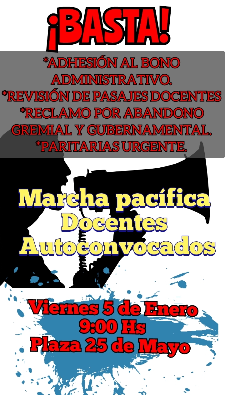 Los docentes nos autoconvocamos y manifestamos el próximo viernes 5 de enero a las 9h en la Plaza 25 de Mayo - Catamarca.