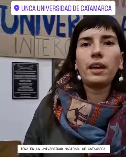 Es un grupo de estudiantes de la Facultad de Humanidades, que luego de una clase pública, resolvieron tomar las instalaciones de la casa de altos estudios.