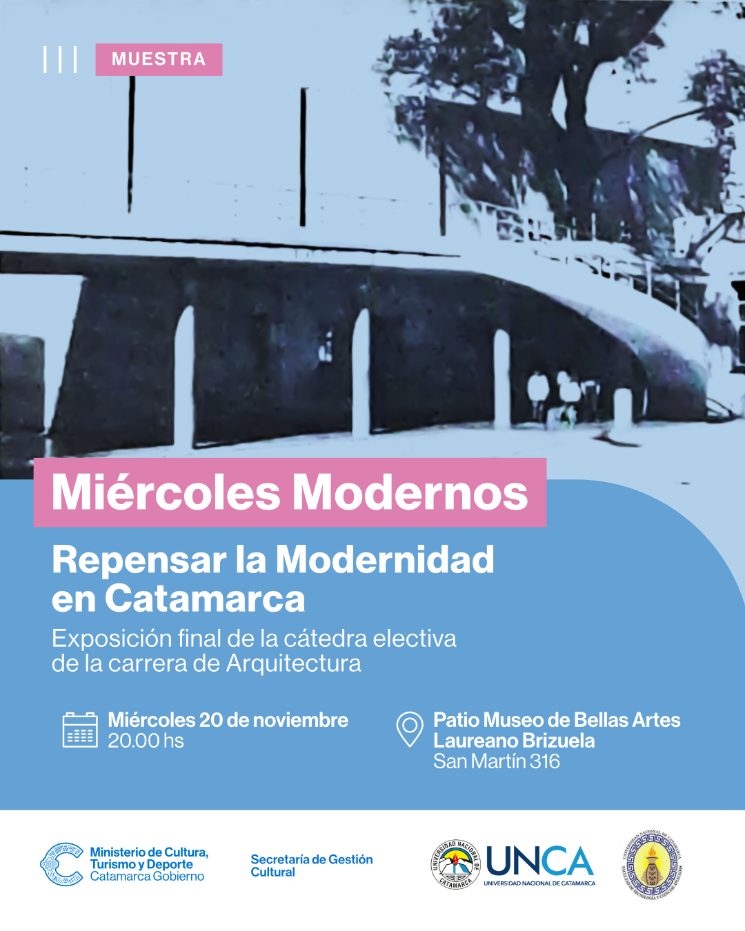Tanto la asignatura “Repensar la Modernidad”, como el ciclo de charlas “Miércoles Modernos” conforman el espacio “Catamarca Moderna”, un ámbito de debate colectivo destinado a difundir los pensamientos y las obras de la arquitectura moderna. Este espacio está coordinado por los arquitectos Basilio Bomczuk y Laura Maubecín.