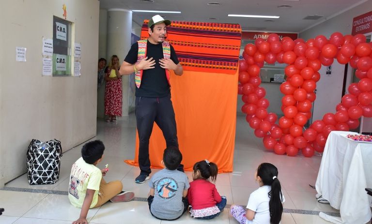 Por último, el Prof. Walter Palavecino, de la Secretaría de Extensión de la UNCA, presentó una obra de títeres protagonizada por “Burro”, para el disfrute de los pequeños pacientes que se encontraban en el auditorio.