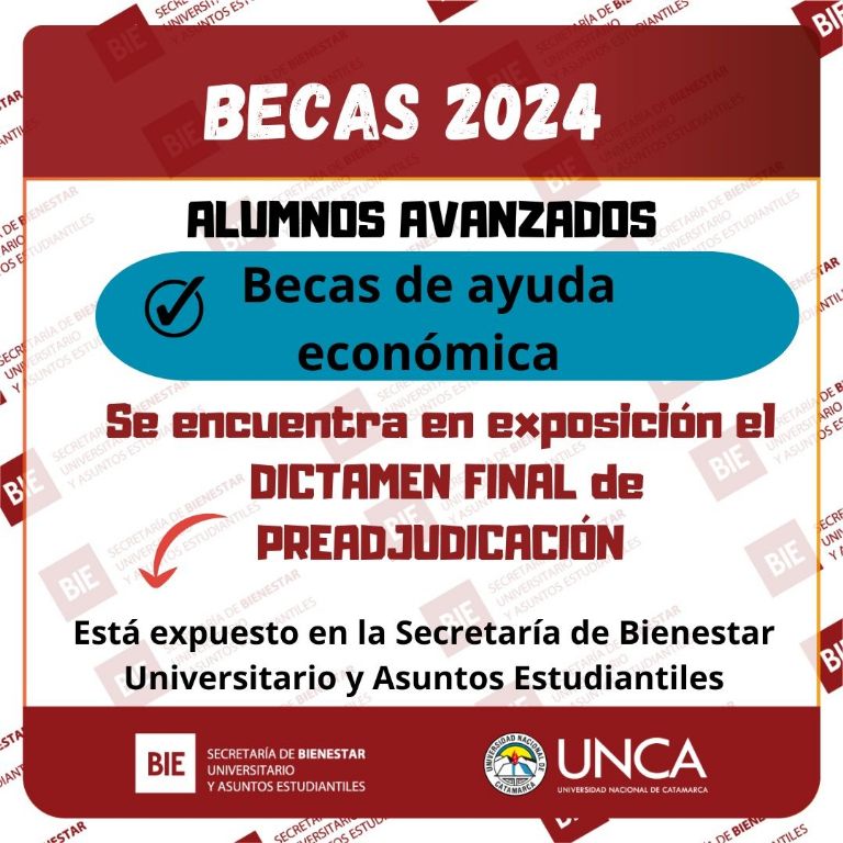 La Secretaría de Bienestar Universitario y Asuntos Estudiantiles de la Universidad Nacional de Catamarca, comunica a los estudiantes AVANZADOS que se hayan inscripto como aspirantes a las Becas de Ayuda Económicas, que ya se encuentra en