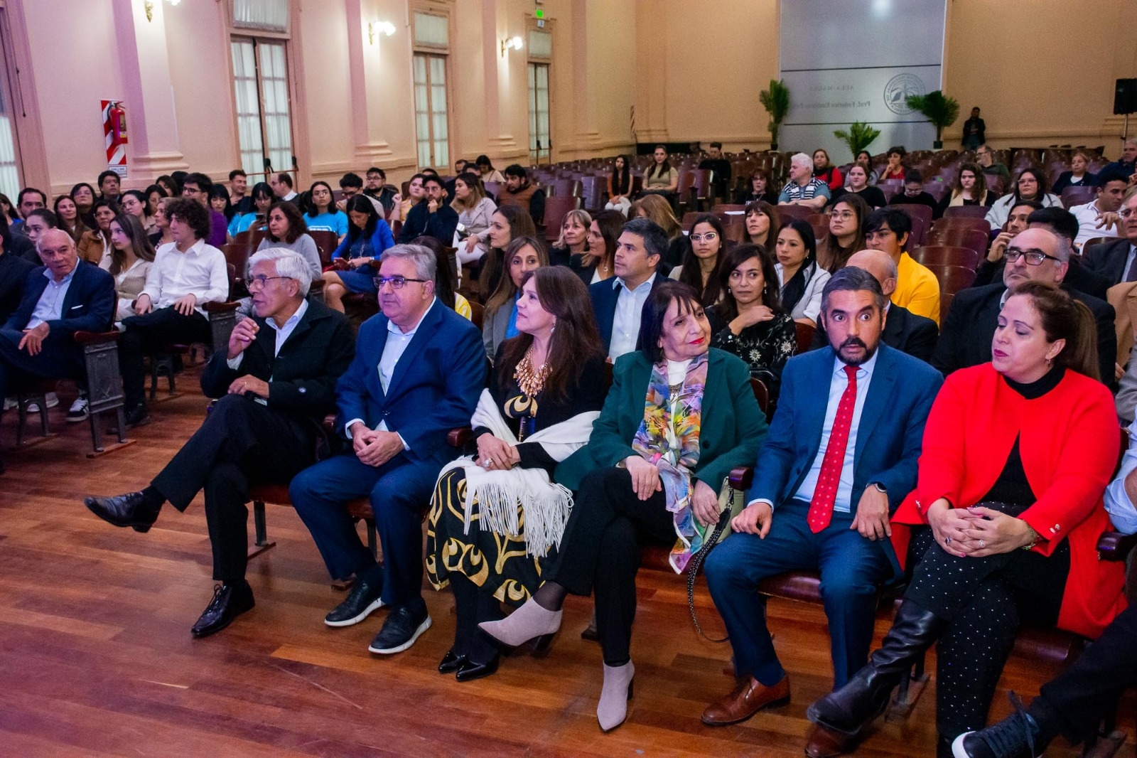 El emotivo acto realizado el pasado viernes en el Aula Magna “Federico Emiliano Pais”, estuvo presidido por el rector, Ing. Oscar Arellano, y el gobernador de la provincia, Raúl Jalil, el decano de la Facultad, Gonzalo Salerno, quienes estuvieron acompañados por autoridades universitarias, provinciales y municipales.