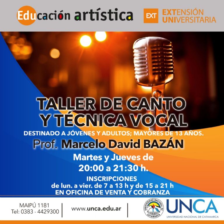 Por otro lado, también se dictará el taller de Canto y Técnica Vocal, a cargo del profesor Marcelo Bazán.