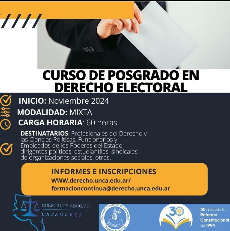 El curso organizado conjuntamente con el Colegio de Abogados de la Provincia, tiene como objetivo proporcionar una formación académica rigurosa y especializada en los aspectos legales, normativos y procedimentales que configuran los procesos electorales en Argentina. A través de un enfoque integral, los participantes explorarán desde los fundamentos políticos del derecho electoral hasta su implementación práctica, promoviendo el análisis crítico y el debate académico.