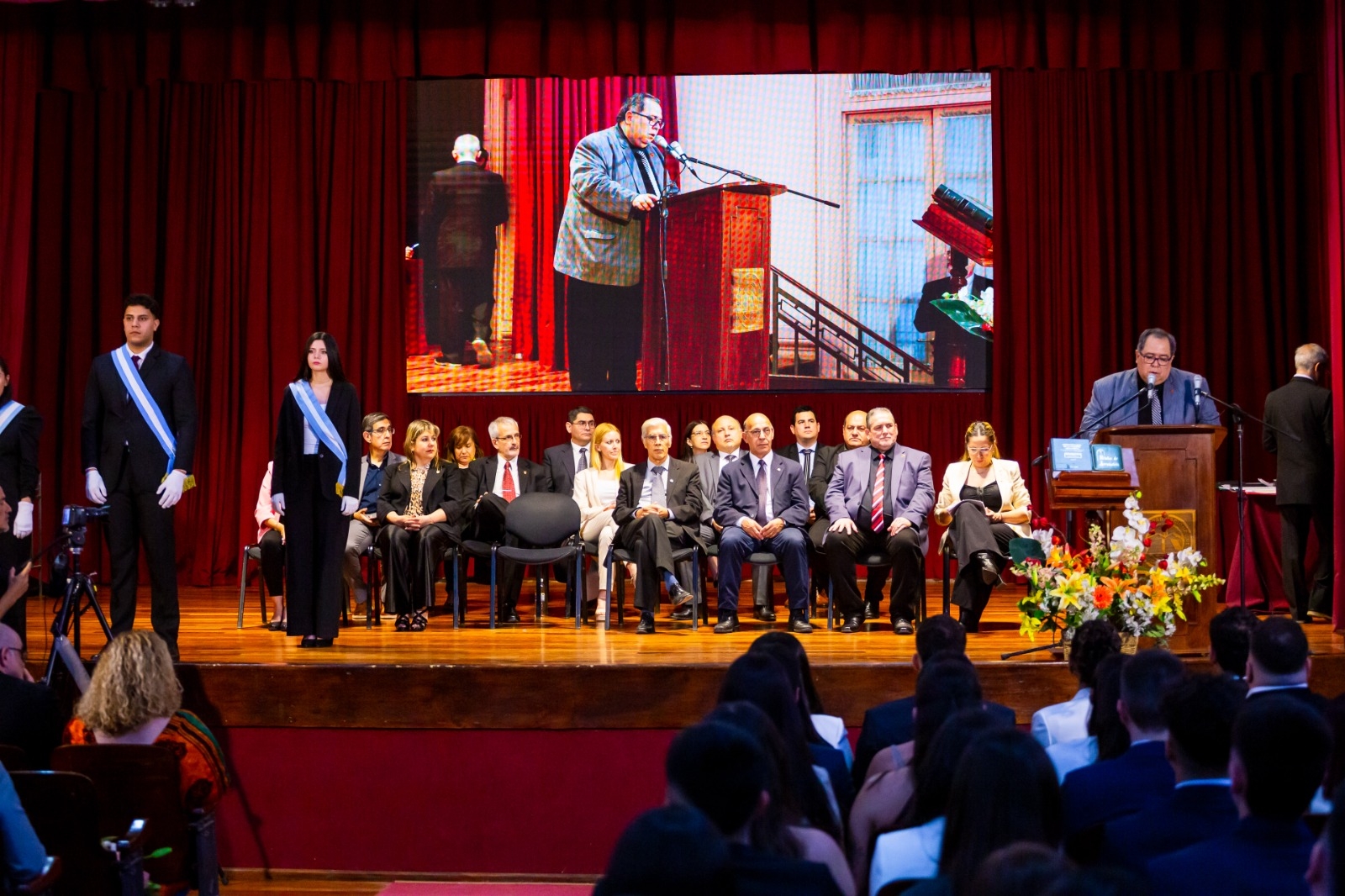 “Este es el acto más trascendental en la vida académica de nuestra Facultad. Tenemos 93 graduados de distintas carreras de grado, pregrado y posgrado”, expresó el decano de la Facultad, CPN Alfredo Lazarte, quien además destacó su inicio en una nueva gestión al frente de esta unidad académica. “Estoy iniciando un nuevo mandato y quiero valorar que, en estos cuatro años, me sentí muy acompañado por todos los claustros. Hoy estamos contentos y dispuestos a celebrar este día, que es tan importante para nosotros como autoridades y, por supuesto, para los egresados. Una carrera es exigente, muy difícil, pero tiene sus frutos, y hoy estamos materializando esos sueños”.