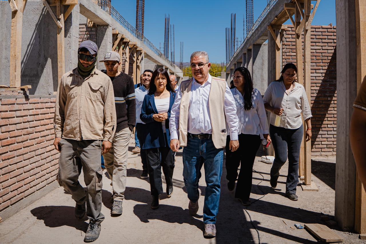 El gobernador Raúl Jalil, acompañado por la intendenta de Santa María, Érica Inga, recorrió los avances de la construcción de la nueva Escuela Técnica de Santa María, una obra que ya cuenta con casi un 50% de avance.