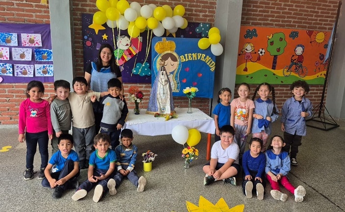 Este jueves 13 de noviembre, la imagen de la Virgen del Valle que se venera en la Ermita de Valle Viejo visitó el Nivel Inicial del Centro Educativo Nº 3 Maestra María Emilia Azar.
