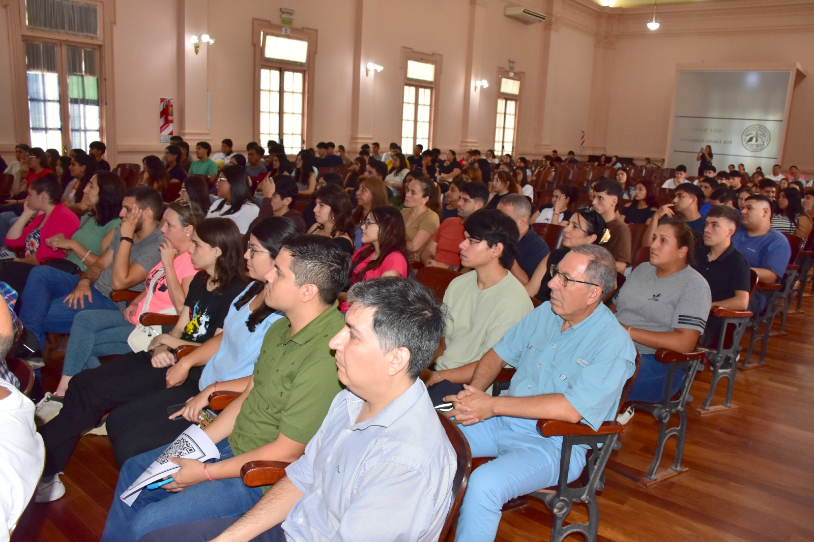 Durante su alocución, el Decano se dirigió a los flamantes alumnos y les aseguró “que las puertas de esa Facultad y la UNCA están abiertas para brindarles la ayuda necesaria en sus primeros pasos en la vida universitaria”, y les dio la bienvenida a “esta nueva etapa de sus vidas”. Además, personal de la secretaría de Bienestar Universitario brindó información sobre Becas, Comedor y Residencia.