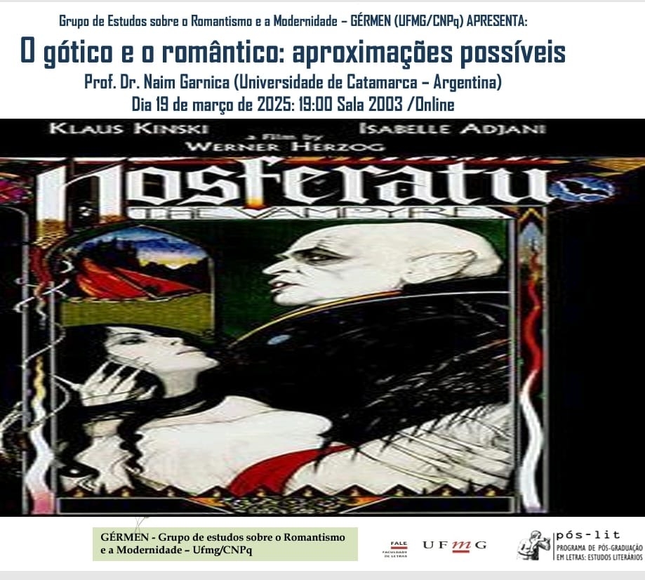 La conferencia, titulada "Lo gótico y lo romántico: aproximaciones posibles", se llevará a cabo el 19 de marzo de 2025, a las 19:00 horas (hora de Brasil), en la Sala 2003 de la UFMG, con modalidad online.