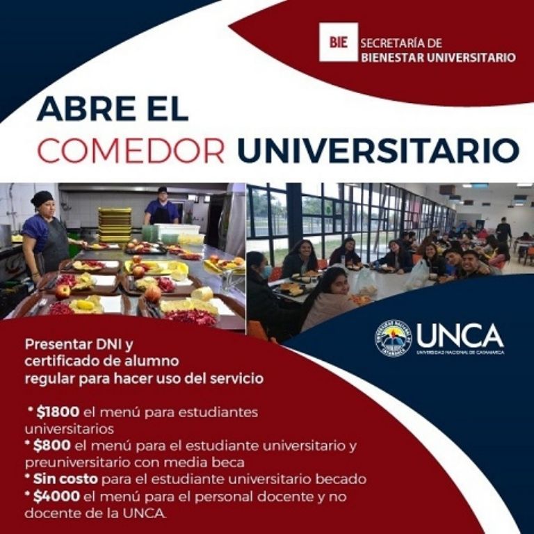 - $ 4000 el menú para el personal Docente y NODOCENTE de la UNCA