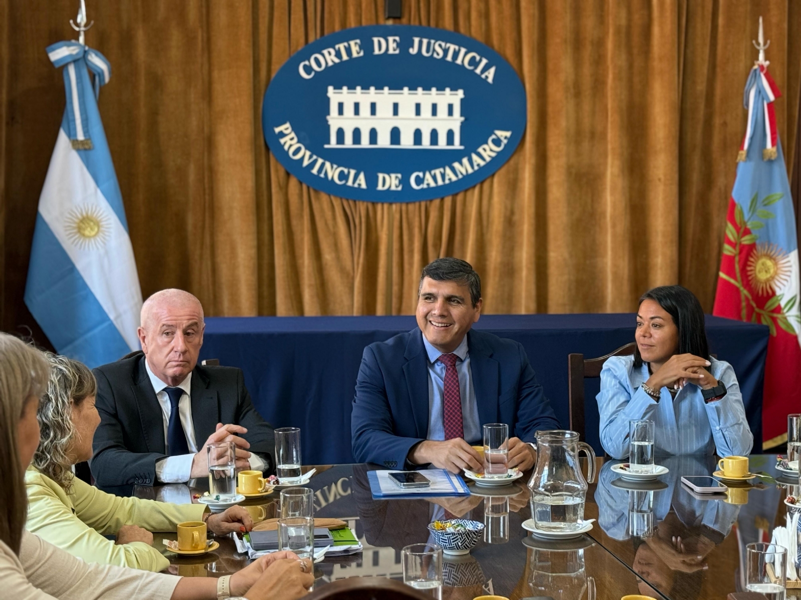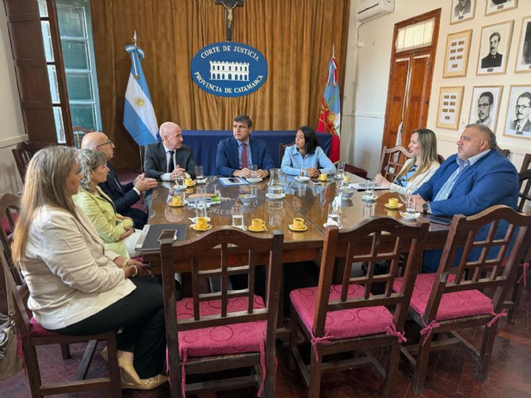 En el salón San Martín, se encontraron los ministros de la Corte de Justicia de Catamarca, Hernán Martel, Fabiana Gómez y Jorge Bracamonte, con autoridades de la Facultad de Ciencias de la Salud, entre ellos el decano Dr. Omar Teodulfo Barrionuevo, la secretaria académica Lic. Alejandra Machado Nieto y la Dra. Claudia Paladino, quienes marcaron el inicio de una alianza clave para la educación superior en la provincia. También participaron la Dra. María Luciana Collard Borsotti, directora del Departamento de Medicina Laboral, y el Dr. Sebastián Vega, director del Cuerpo Interdisciplinario Forense (CIF).