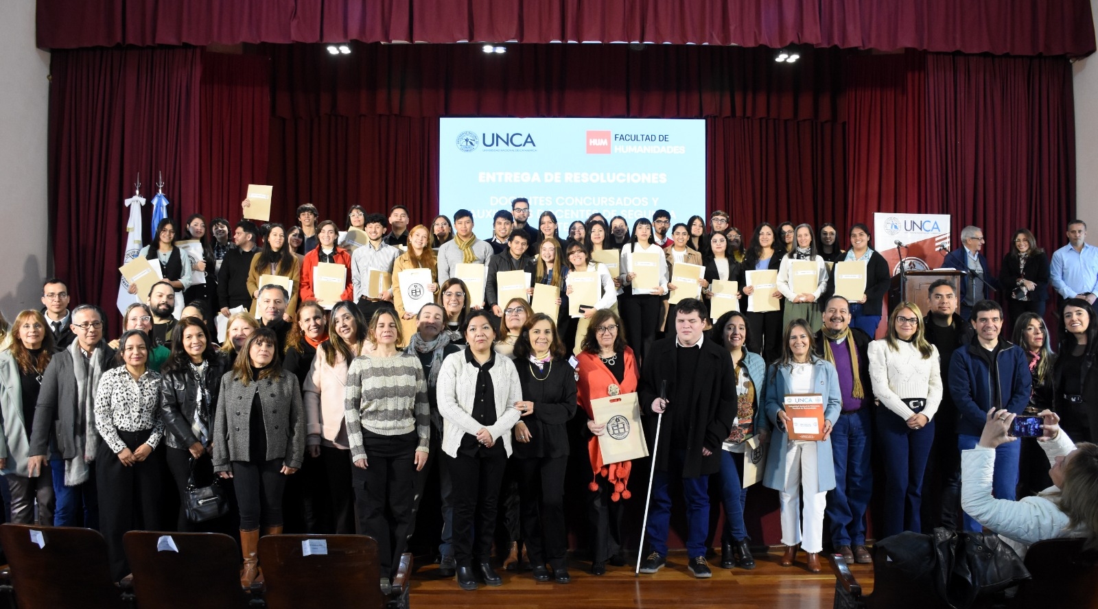 En un acto celebrado ayer en el Aula Magna de la Facultad de Humanidades de la Universidad Nacional de Catamarca, se llevó a cabo la entrega de resoluciones a docentes concursados y a ayudantes alumnos que fueron recientemente seleccionados en concursos públicos y abiertos para distintas cátedras de la Casa de Altos Estudios.