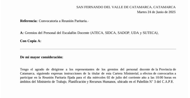 Fueron convocados ATECA, SIDCA, SADOP de la Intersindical y también SUTECA y UDA que no comparten este espacio gremial.