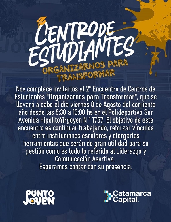 Este importante espacio está destinado a fortalecer la participación estudiantil, consolidar vínculos entre las distintas instituciones escolares y brindar herramientas claves para la gestión de los centros de estudiantes. Entre los ejes centrales de esta jornada se abordarán temáticas relacionadas con el liderazgo juvenil y la comunicación asertiva, dos pilares fundamentales para construir una representación estudiantil activa, comprometida y con capacidad de transformación.
