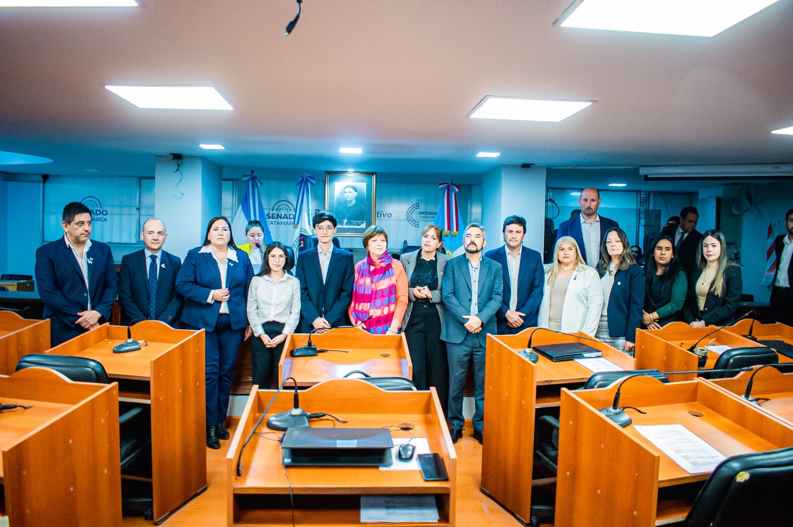 La Cámara de Diputados hizo entrega un reconocimiento al equipo de Derechos Humanos de la Facultad de Derecho de la Universidad Nacional de Catamarca (UNCa), integrado por los estudiantes Alina Olmos Bazán y Benjamín González Luna, junto a su coach Cynthia Romero, quienes obtuvieron el primer puesto en la XX Competencia Interuniversitaria de Derechos Humanos llevada a cabo en la Universidad Nacional de La Plata.