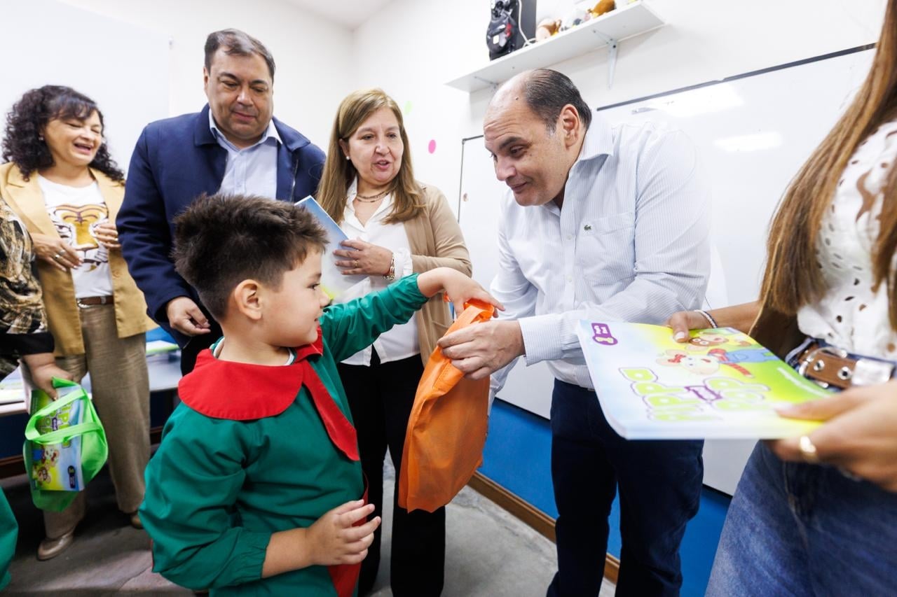 El intendente de la Capital, Gustavo Saadi, junto a autoridades educativas, recorrió las escuelas municipales para concretar una nueva entrega de kits escolares y libros de inglés destinados, por primera vez, a los alumnos de todos los niveles del Sistema Educativo Municipal (SEM). La medida alcanzó a más de 2.200 estudiantes de las instituciones N°1 "El Principito", N° 2 "Juan Oscar Ponferrada" y N°3 "Gustavo Gabriel Levene".