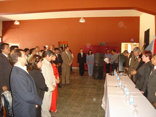 Luego de la recepción por parte del intendente y su gabinete, los visitantes se dirigieron al salón del hotel de turismo donde fueron presentados ante los representantes de las distintas instituciones de Santa María.