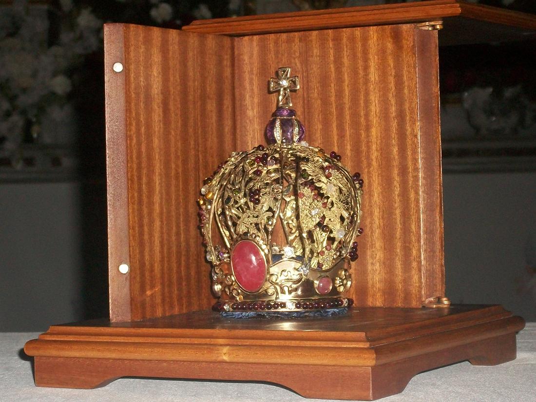 Se trata de una joya única, confeccionada con oro, piedras preciosas y semipreciosas: brillantes, rubíes, granates, rodocrosita (piedra semipreciosa que identifica a nuestra provincia), cubic, entre otros elementos. El material utilizado para su confección fue donado por particulares y sacerdotes.