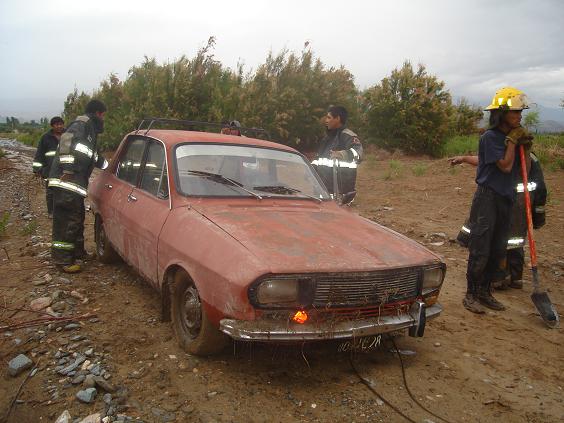 Finalmente a las 8.30 los bomberos volvieron a intervenir y mas precisamente el la localidad de Lampacito donde un Renault 12 que intentó a las 5 de la mañana cruzar el río sin percatarse de la creciente quedó literalmente tapado, durante horas trabajaron personal de bomberos quien junto a un tractor del municipio de Santa María lograron sacarlo al automóvil, por suerte los muchachos que se conducían en el mismo se encuentran bien y fuera de peligro.
