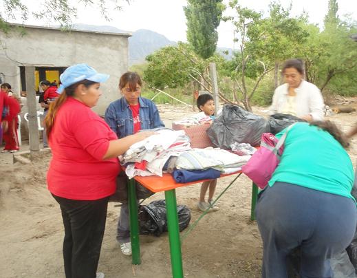 En diálogo con la Sra. Gladys Guanco, del Partido Justicialista, comentó que vienen trabajando con todas las mujeres para la comunidad. En este caso, se entregó ropa en buen estado a niños y adultos, que fueron donadas por distintas personas que tomaron conocimiento de la situación que vivió y vive la gente de esta localidad.