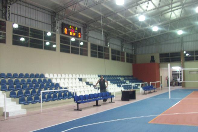 El polideportivo posee aislación aplicada a cubierta e iluminación reglamentaria para actividades deportivas nocturnas. La cancha de básquet cuenta con tableros de acrílico, móviles y regulables en altura. La cancha de vóley se encuentra superpuesta con parantes removibles. Las tribunas pueden albergar a casi 600 personas sentadas. Las instalaciones sanitarias están separadas por género, tienen acceso para personas con capacidades diferentes y cuenta con vestuarios y duchas.