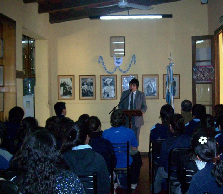 El ciclo de charlas, se lleva adelante en el marco de las actividades programadas por los festejos del Bicentenario de la Patria, está dirigido a alumnos de EGB y Polimodal, con la coordinación del Prof. Roberto Sayes. En este marco, se desarrollan temas de historia y metodología, charla-debate, visitas guiadas a sitios históricos, proyección de películas, entre otros.