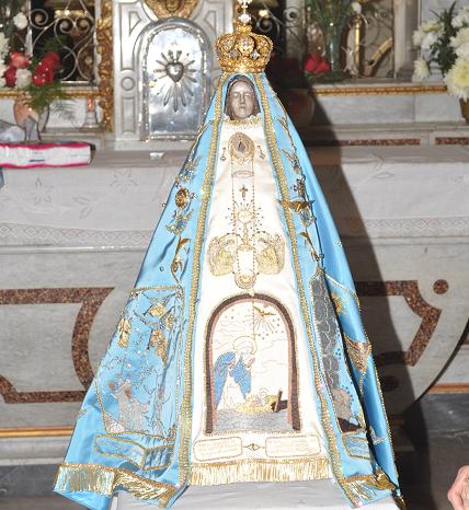 Rina explicó también que muchas joyas y otros elementos donados por devotos de la Virgen, están también en el manto, de modo que sus hijos que con mucho esfuerzo hicieron estos regalos a la Madre, están ahora de algún modo presentes en la ropa que recubre la Sagrada Imagen. También lo están todos aquellos que aportaron dinero, que permitió comprar hilo y otros materiales necesarios para la confección.