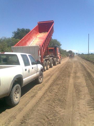Para ello, el municipio contrato el servicio de 6 camiones con bateas, los cuales realizan 36 viajes de 22 metros cúbicos c/u por día. A esto hay que sumarle 4 camiones con volquetes pertenecientes al municipio, 3 camiones regadores, dos moto niveladoras y dos cargadores frontales.