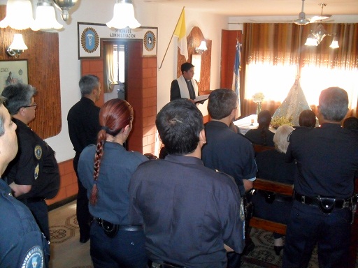 Ayer. la Imagen fue trasladada desde Diario El Esquiú hasta las dependencias de la delegación local de la Policía Federal, hasta donde fue llevada por el Capellán Mayor del Santuario y Catedral Basílica, Pbro. José Aguirre, y recibida con mucha devoción por los jefes y personal de la unidad policial. Allí permanecerá hasta hoy a la mañana, en que retornará a la Catedral Basílica.