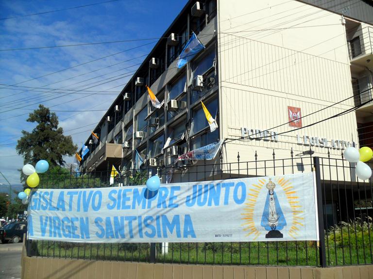 Posteriormente, se invitó a los presentes a ingresar al hall del edificio legislativo, donde la Sagrada Imagen fue colocada sobre un altar decorado para la Reina del Valle. Allí recibió el homenaje con el Ave María, interpretado por el tenor Ru Inchausti.