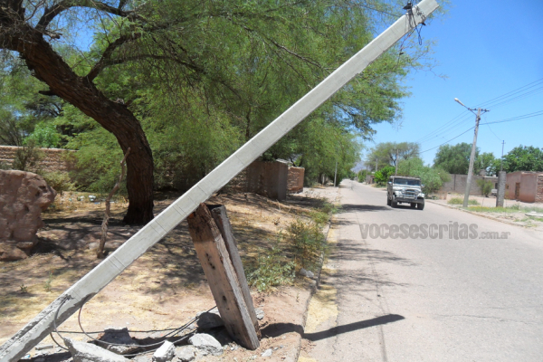 El día de ayer, aparentemente algún personal de la empresa telefónica habría colocado dos tablones pequeños, con el fin de apuntalar el poste para que no cediera y cayera hacia la cinta asfáltica y llegara a ocasionar inconvenientes al tránsito, aunque no deja de ser un riesgo.