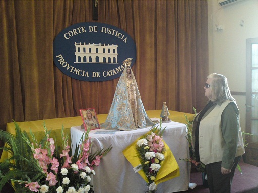 Los empleados recibieron a la imagen de la Virgen del Valle en la Corte de Justicia, y luego se dirigieron a la Catedral Basílica donde participaron de la misa oficiada por Mons. Elmer Miani para el Ámbito de la Justicia Provincial.