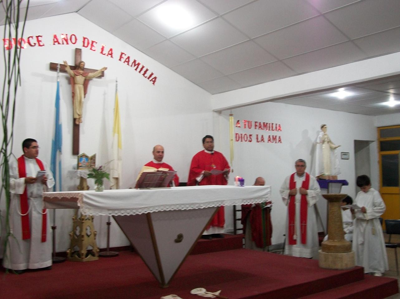 La celebración eucarística fue presidida por el P. Suárez y concelebrada por el Vicario General de la Diócesis, Pbro. Julio Quiroga del Pino; el Párroco Emérito de Tinogasta, Mons. Julio Niñoles; el Vicario Parroquial de San José Obrero, Pbro. Santiago Granillo; y el Pbro. Juan Orquera.