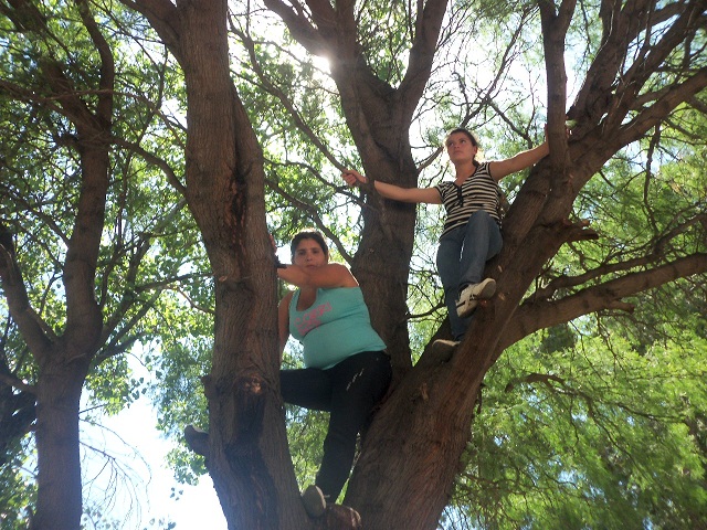 Dos mujeres amenazan con arrojarse de un árbol que está ubicado en la Plaza 25 de Mayo. Ambas residen en el barrio La Esperanza.