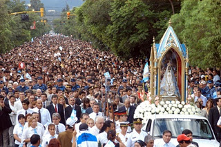A las 18.30 será la procesión con la Sagrada Imagen de Nuestra Señora del Valle, que comenzará en la Plaza del Maestro, recorriendo avenida Virgen del Valle, calle República, bordeando Rivadavia y San Martín, para culminar en el atrio de la Catedral Basílica.