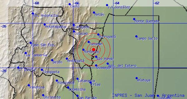 El epicentro se ubicó a 45 Km. en dirección sur-sureste de la ciudad de San Miguel de Tucumán. Mientras tanto, la profundidad fue de 27 Km. y la magnitud de 5.9.