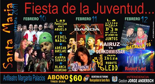 Es así que el jueves arrancará la Fiesta de la Juventud con una cartelera de lujo en los Valles Calchaquíes. Ese mismo día será orientado para los amantes del Rock y para eso se contrató la presencia de Las Pastillas del Abuelo, Fidel Nadal, Adrián Barilari, Karma Sudaca, Blanca Oscuridad y varias bandas mas que estarán presentes en el anfiteatro municipal ese día.