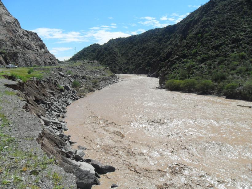 Nota: Las fotos corresponden a la Quebrada de Belén. Se puede ver la crecida del río y los daños producidos en un sector de la calzada.