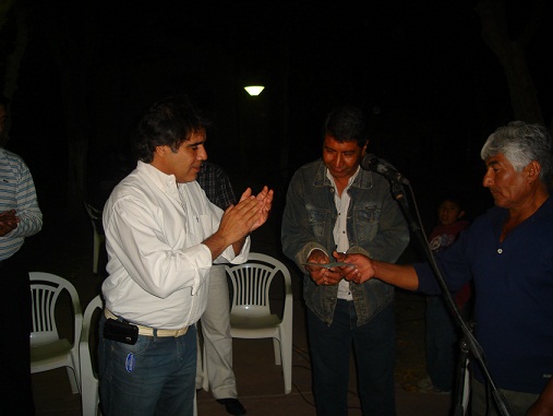 En el inicio del acto, se procedió a dar lectura de una síntesis de la historia de la gestión llevada a cabo por algunos productores dispersos de la anterior comisión directiva de la Cooperativa para dar paso luego a los emotivos conceptos del presidente de la reciente conformada Cooperativa “El Milagro” Isidro Cervantes, quien se refirió principalmente a la ágil gestión realizada por el diputado Raúl Chico a través de la gobernadora electa de la provincia, Dra. Lucia Corpacci, además de destacar la activa participación de un grupo de productores para llevar adelante el anhelado proyecto del pozo de agua para riego que hoy ya es una realidad inminente para el sector.