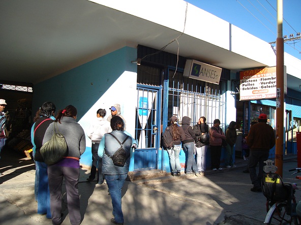 La actual oficina funciona en los locales del mercado municipal en pleno centro, pero esto no alcanza, ya que solo dos empleadas atienden a mas de cien personas todos los días y muchas de ellas que son mujeres van con sus bebes y tienen que esperar afuera ya que no entran todas las personas en esta oficina y en esta época el frío muchas veces alcanza los cero grados.