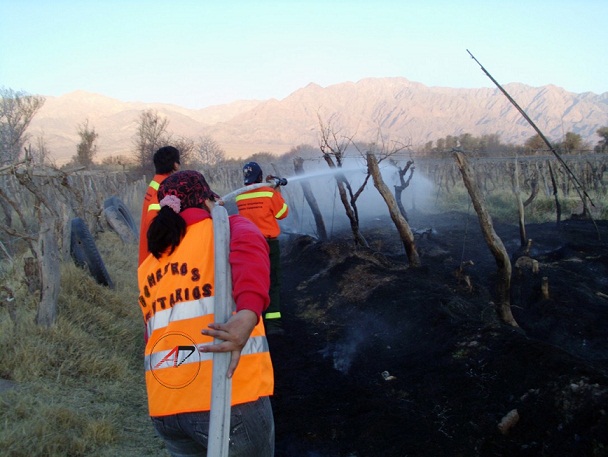 De inmediato el personal se hicieron presente en el lugar parea comenzar a sofocar el fuego que estaba consumiendo varias parras de viña, provocando serias pérdidas a su propietario por tratarse de uva de variedades superiores que se utiliza para pasa de exportación.