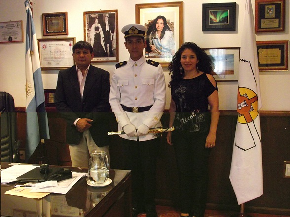 En esta oportunidad, de uniforme blanco Juan Chaparro, visitó al intendente Jorge Andersch y la presidenta del Concejo Deliberante, Evangelina Sánchez, y comentó como sigue su carrera militar.