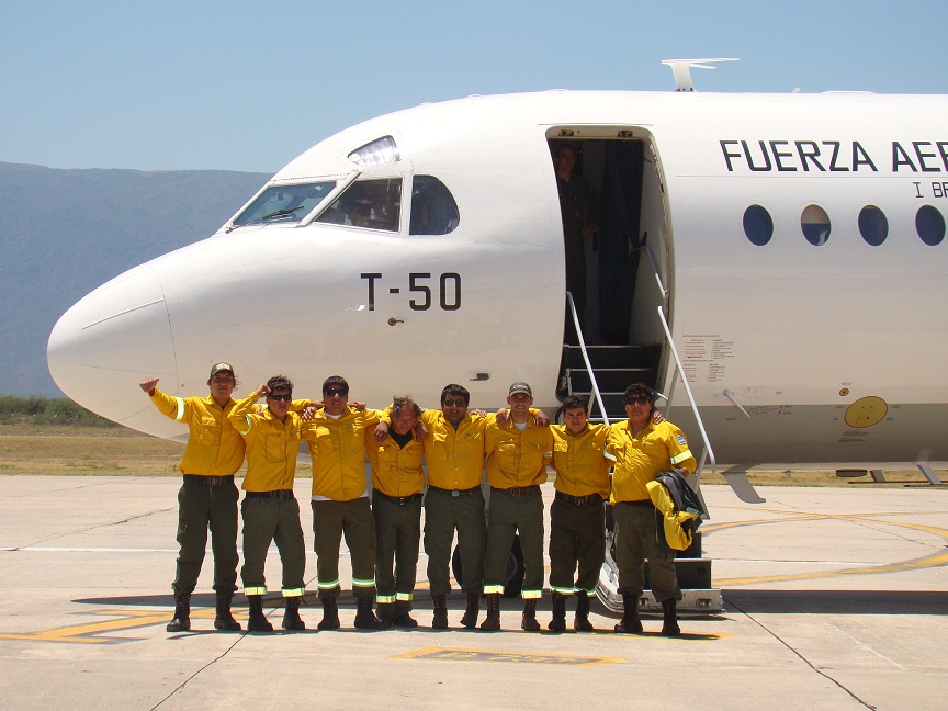 El avión de la Fuerza Aérea partió a las 12:30 con destino a Mendoza, donde recogieron a un grupo más de combatientes. Luego viajaron directo al “El Bolsón” donde fueron recibidos y trasladados a la localidad de “El Hoyo” para comenzar las tareas de mitigación.