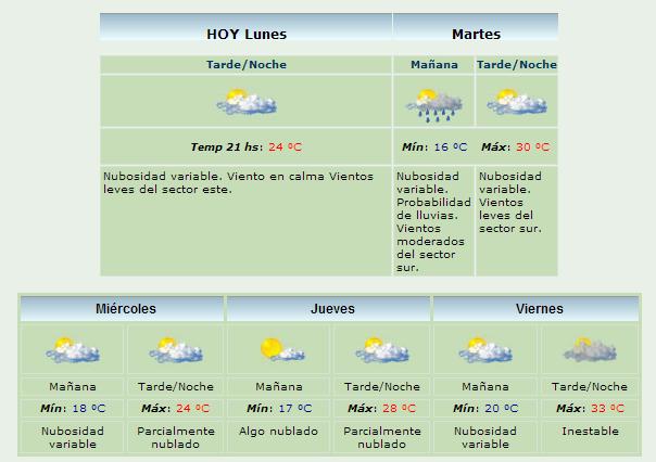 Superado el último frío del pasado invierno, el clima comienza a mostrarse más agradable. Para los próximos días las temperaturas máximas rondarán, incluso superarán los 30°. Para mañana hay probabilidades de lluvias. Conozca cómo estará el tiempo hasta el viernes según el pronóstico extendido del Servicio Meteorológico Nacional.