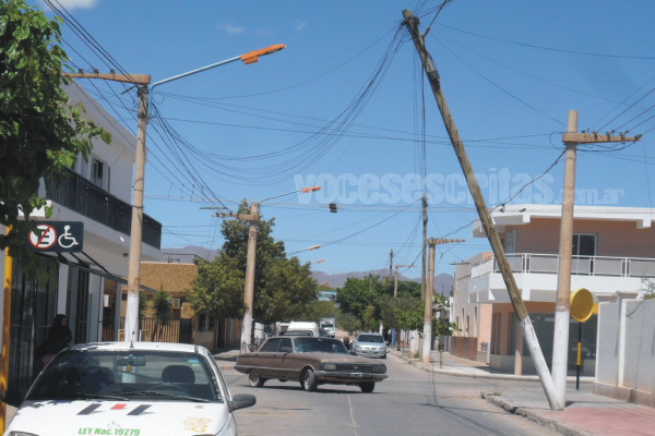 Es el mismo que hace más de 30 días que vuelve a quedar a la buena de Dios, o a punto de caer si no se hace urgente el cambio de poste, el que es utilizado por empresas que ocupan el tendido de cables y que desde el aquel día que corrió el furioso viento zonda del mes pasado que lo dejó en peor estado, hoy la preocupación de los vecinos los coloca nuevamente en “peligro latente”.