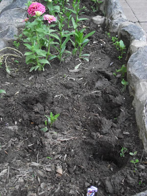 Según un testigo, fueron dos mujeres acompañadas de menores y preparadas con bolsas cargaron una parte de los plantines mientras dejaban que los menores “jugaran” con el resto.