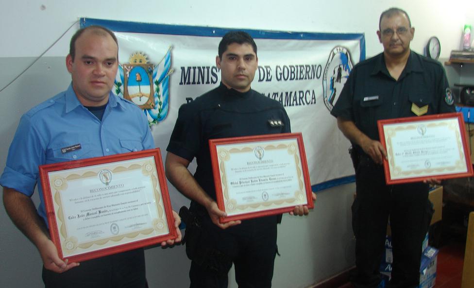 Los policías que recibieron el reconocimiento fueron, el Cabo Primero Rodolfo Alberto Arroyo, el cabo Primero Juan Manuel Bazán, y el oficial Principal Rubén Eduardo Cevallos.