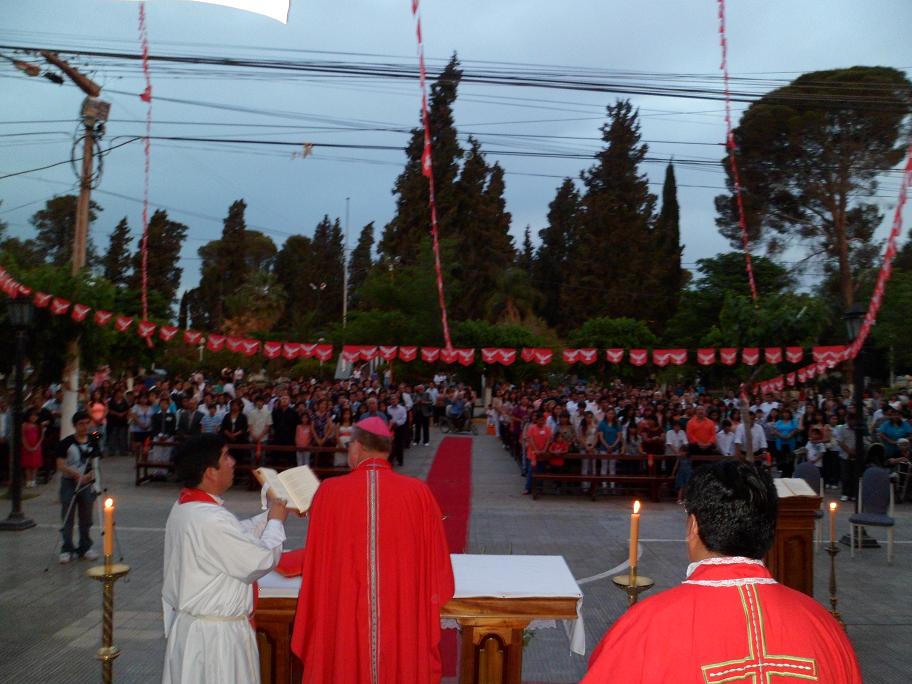 Antes del inicio de la Santa Misa, presidida por el Mons. Luis Urbanc, y concelebrada por el Cura Párroco, Pbro. Esteban Chaile, y el Vicario Parroquial, Pbro. José Aguirre, la secretaria parroquial dio la bienvenida al Obispo, destacando la profunda alegría y gratitud de contar con su presencia, para “que nos aliente, que su palabra nos ilumine y su ministerio nos congregue como un solo rebaño; que es el llamado que Jesús constantemente nos hace, a vivir en unidad, en fraterna comunión para mostrar al mundo el sentido de seguir creyendo y esperando en Dios y en sus promesas”.